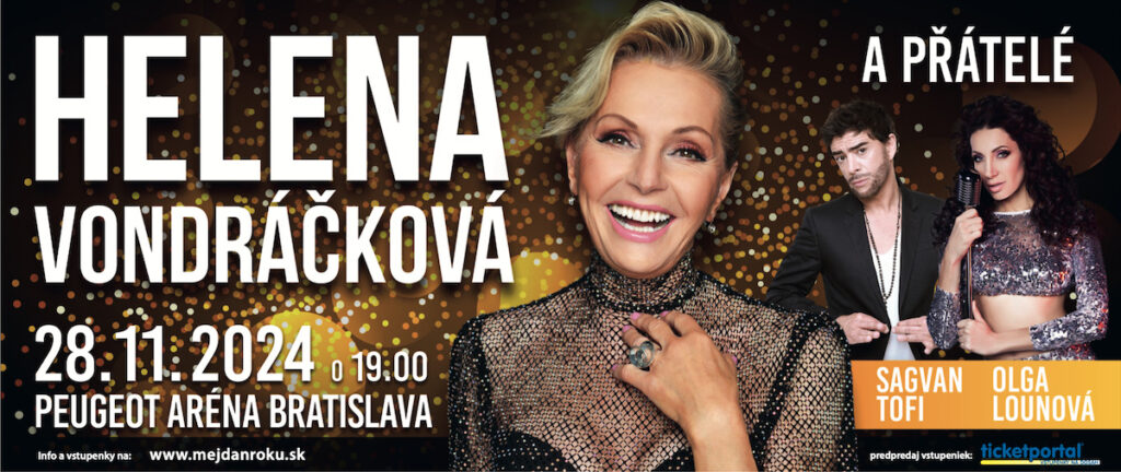 Vianočný koncert Helena Vondrácková a přátelé sa uskutoční v Bratislave v Peugeot aréne 28. novembra 2024. O koncert je veľký záujem, takže ak si chcete vychutnať atmosféru najkrajších sviatkov roka v spoločnosti Božskej Heleny, zaobstarajte si vstupenky čo najskôr. Vstupenky sú k dispozícii v sieti Ticketportal.
